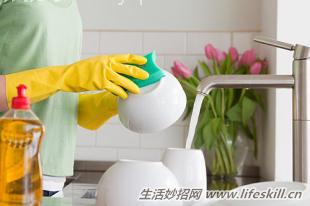 2. 清洁精是化学品,长期使用可能会对我们的健康不利,如果碗盘上没有多少油,就尽量不要使用清洁精了。这时候只要烧一点热水,将碗盘放在热水里泡一下,再刷同样可以刷得很干净!