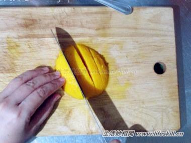 一般我们切芒果时都是在顶端切十字并往下延伸,随后依次剥去四片芒果皮,但芒果皮上总黏着些许果肉实在可惜。今天生活妙招网小编教你用一支汤匙就能轻松取下芒果肉,又不让果肉黏果皮!