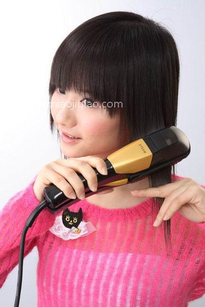 步骤:1.留出刘海,修剪出发型的初步轮廓;2.用沙宣3重修护负离子直发夹(VS2033CN)将两侧及后脑勺的头发分束分层次往下拉直;3.用手整理造型,使其更自然。发型师点评:厚重而齐平的刘海是造型重点