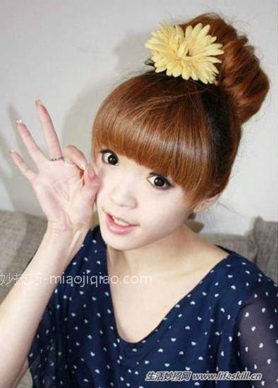 第七款:适合中长发MM超简单的花苞头
