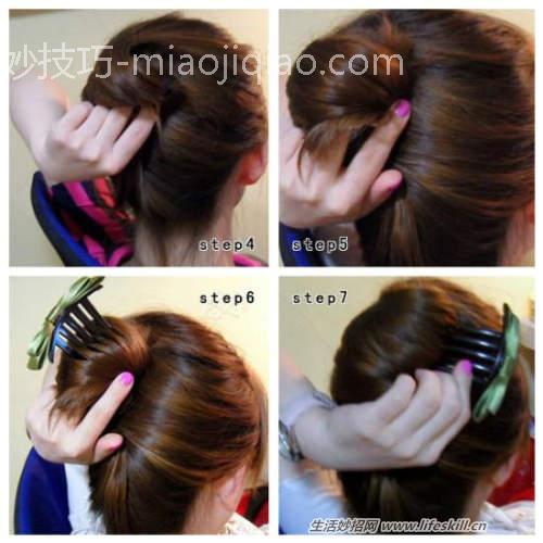 叉子插进发髻,全部推进去就完成了,非常得简单省时。
