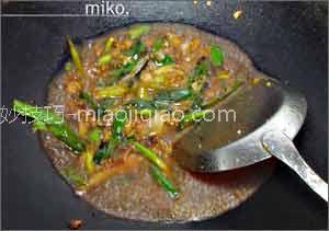 边炒边加入酱油,糖,水,鸡精,蚝。