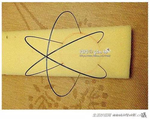1、先用斜口钳剪出3根或4根等长的铁丝,将铁丝对凹成椭圆交叉的插入海绵(或者泡沫)成热气球状
