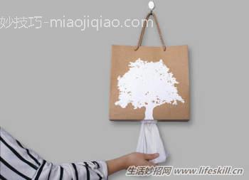 用纸袋做成的可挂式餐巾纸盒子很方便,最推荐。